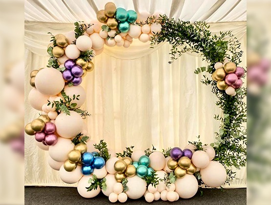 Image displayed on website is only for reference. Size, height, colour and design ( props ) can differ.The balloons will be hung using cello tape as we use helium due to its asphyxiation properties.